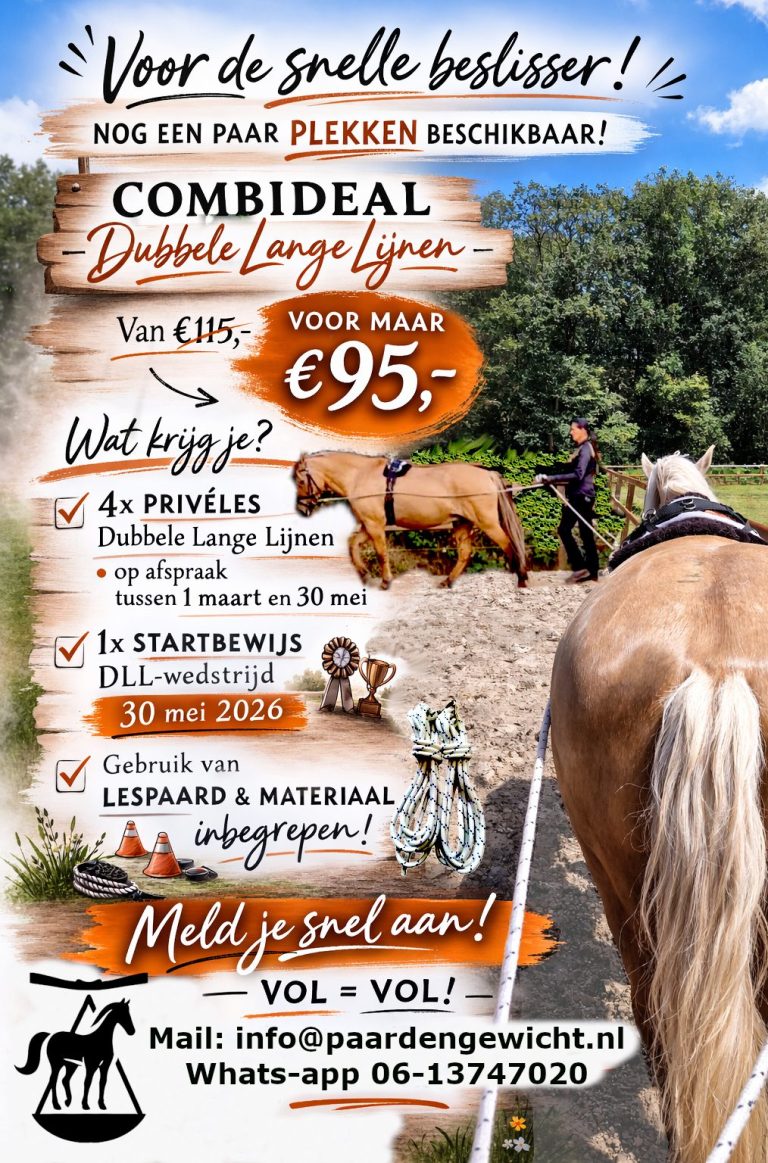 ✔ 4x privéles Dubbele Lange Lijnen met een lespaard van Paard en Gewicht